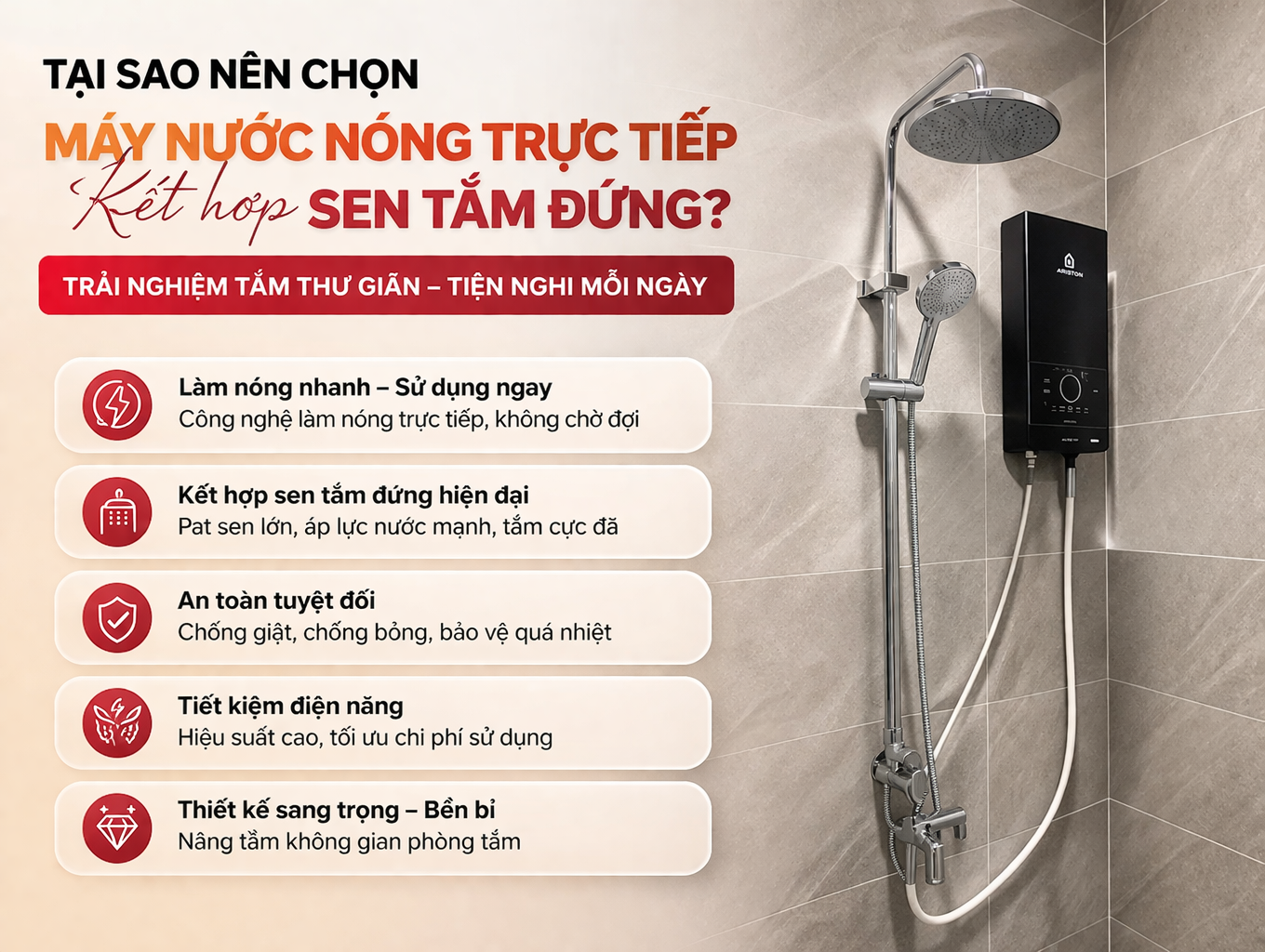 Tại Sao Nên Chọn Máy Nước Nóng Trực Tiếp Kết Hợp Sen Tắm Đứng?